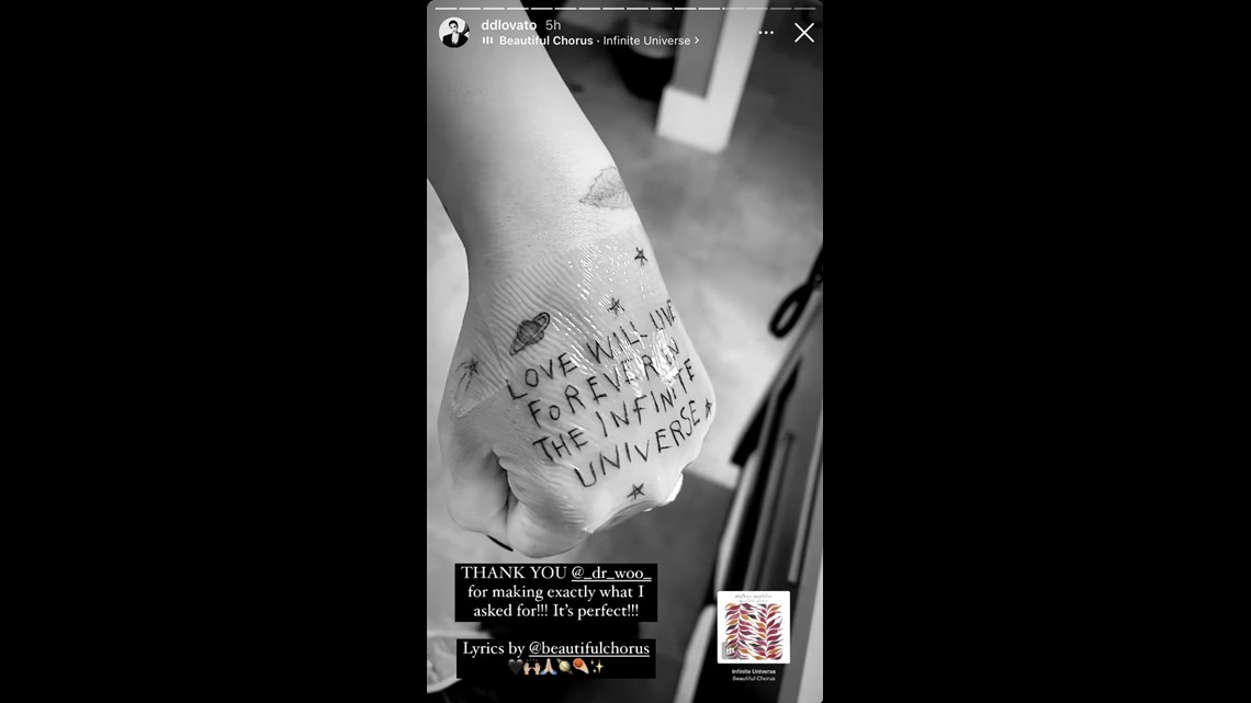 Demi Lovato Gets Large New Hand Tattoo See The Song Lyrics Kare11 Com